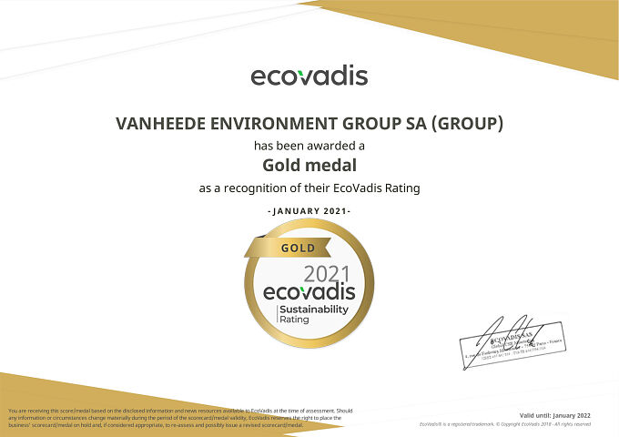 We are proud to announce that Vanheede Environment Group has received a gold medal for its Ecovadis assessment.