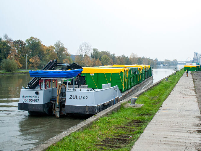 Alors qu'un chauffeur perd actuellement une journée complète à transiter du Limbourg à la Flandre-Occidentale, avec un bateau, on peut emporter 13 bennes à déchets d'un coup. Nous sommes très fiers de pouvoir œuvrer à un transport plus durable. Nous ambitionnons de poursuivre cet axe de développement pour rendre notre transport vraiment multimodal.