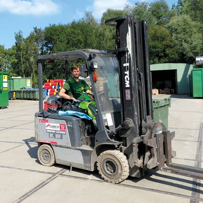 La mise en œuvre de Total Waste Care sur le lieu de travail se fait toujours en concertation. Nous visons surtout un traitement supérieur plus efficace des flux de déchets et une optimisation du flux logistique. Le suivi personnel effectué par notre « man-on-site » ou MOS, génère une vigilance supplémentaire. Après le tri sélectif de vos déchets, notre MOS emporte les récipients de collecte au parc à conteneurs central. Il gère le parc à conteneurs, s'occupe de la logistique interne et est coresponsable de l'ordre et de la propreté dans votre entreprise. Une équipe de MOS mobiles assure flexibilité et continuité en cas d'absence du MOS fixe. Ceux-ci peuvent également être temporairement embauchés en cas de pénurie de personnel propre. Vous pouvez donc toujours compter sur nous !