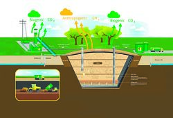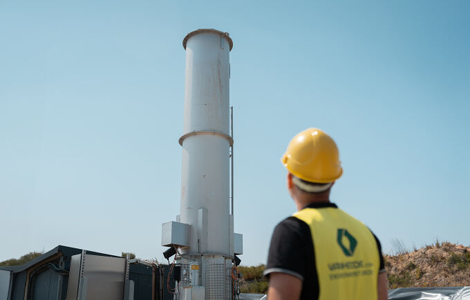 Rumbeke est le site de Vanheede consacré aux activités d'enfouissement. L'élimination des déchets dans les décharges génère des gaz d'enfouissement en raison de leur décomposition. Ceux-ci se composent principalement de CO2 et de CH4. Dans des conditions naturelles, la décomposition aérobie (c'est-à-dire dans un environnement naturel où l'oxygène est présent) de la matière organique émet des émissions de CO2 biogéniques. Or, l’enfouissement génère un environnement anaérobie (sans oxygène libre), qui est la conséquence directe de l'activité humaine. Les déchets organiques sont donc partiellement décomposés de manière anaérobie en émissions anthropogènes de CH4. À Rumbeke, des conduites d'aspiration garantissent la capture de la majeure partie des gaz d’enfouissement (à un taux d'environ 95 %) pour les transformer en gaz naturel ou en électricité. Lors de la combustion aérobie dans un système de cogénération, le carbone capturé dans la matière organique se lie à l'oxygène et est libéré sous forme d'émissions de CO2 biogéniques.